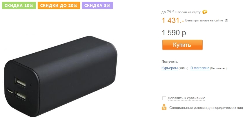 Плюсы. Моментальная готовность. Достал, подсоединил, зарядил! Годится для всех устройств, где есть USB. Достаточно емкостная зарядка для быстрой и качественной отдачи.